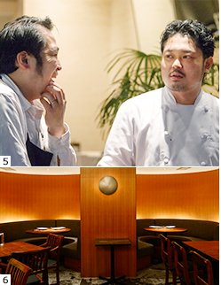 5 右から料理長の鈴木 淳さん、ソムリエの吉澤和雄さん。「ときに無理難題ともいえるこちらの要望を、期待以上の形で仕上げてくれる。頼れる料理人です」(吉澤さん)。「正直毎日大変です(笑)。オーナーもよく言うのが“食材を活かすも殺すも料理人次第”。大変でも、最大限に食材を活かすために皆のアイディアをできる限り反映したいですね」(鈴木さん)。 6 個室やソファー席が用意されているのも魅力。プロジェクターやマイクなどパーティに対応する各種設備もそろい、さまざまなシーンで活用できる。